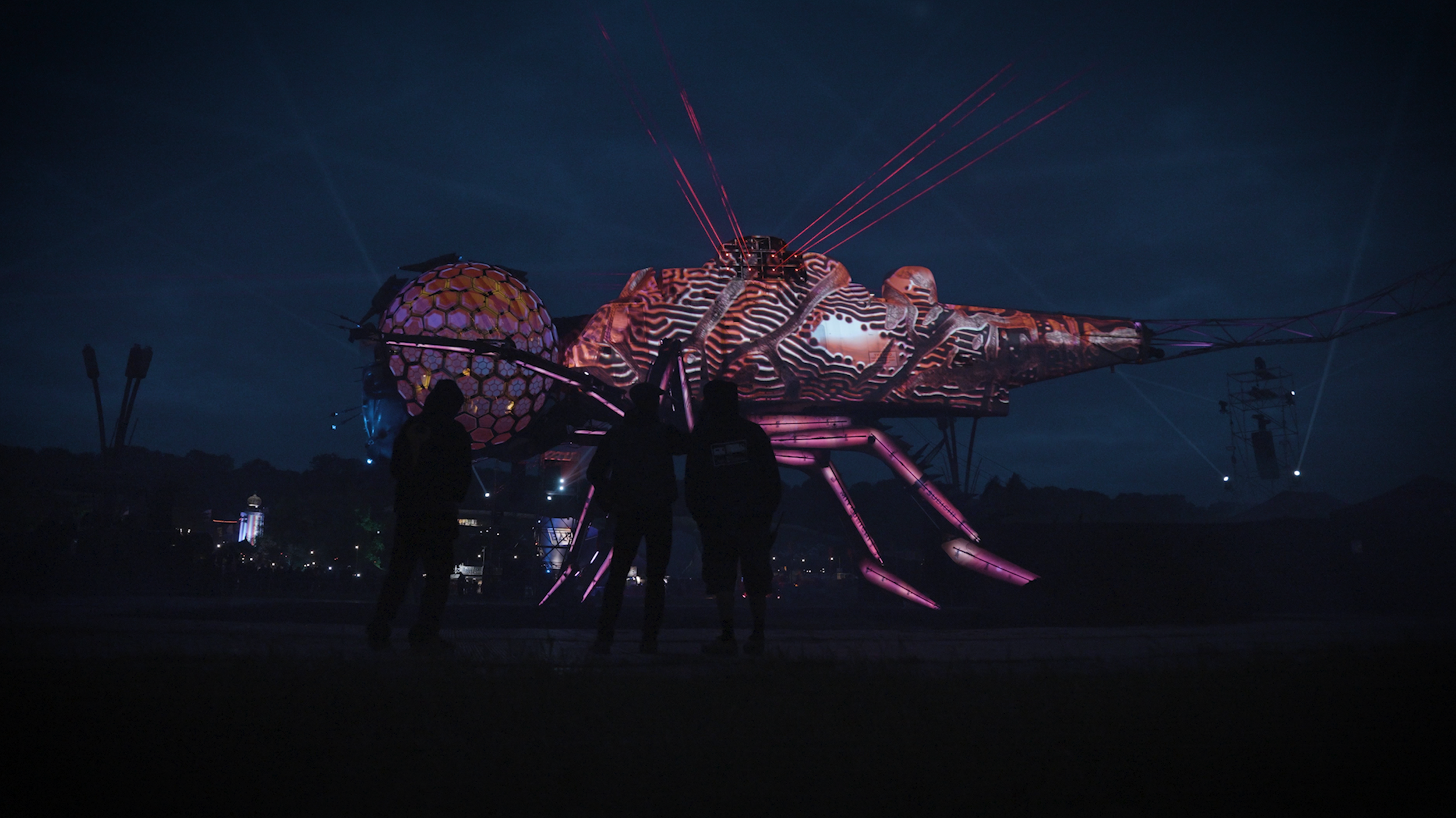 Long form observational doc following the creative team Arcadia Spectacular, building and unveiling their latest creation “The Dragonfly” at Glastonbury Music Festival, 2024.